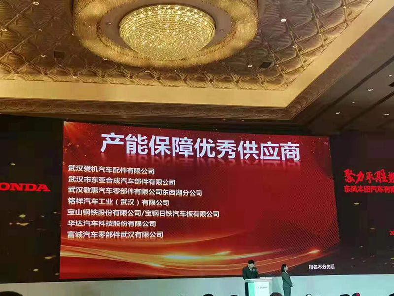2019年12月20日, 公司總經(jīng)理葛江宏參加了公司大客戶東風(fēng)本田在珠海召開的供應(yīng)商大會(huì),公司獲得了東風(fēng)本田2019年度產(chǎn)能保障供應(yīng)商獎(jiǎng)項(xiàng)。公司已連續(xù)多年獲得東風(fēng)本田供應(yīng)商獎(jiǎng)項(xiàng)。